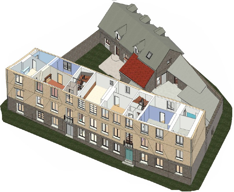 - Levé de bâtiments : intérieur, façade, héberge, coupe, modélisation 3D, calcul de surfaces...